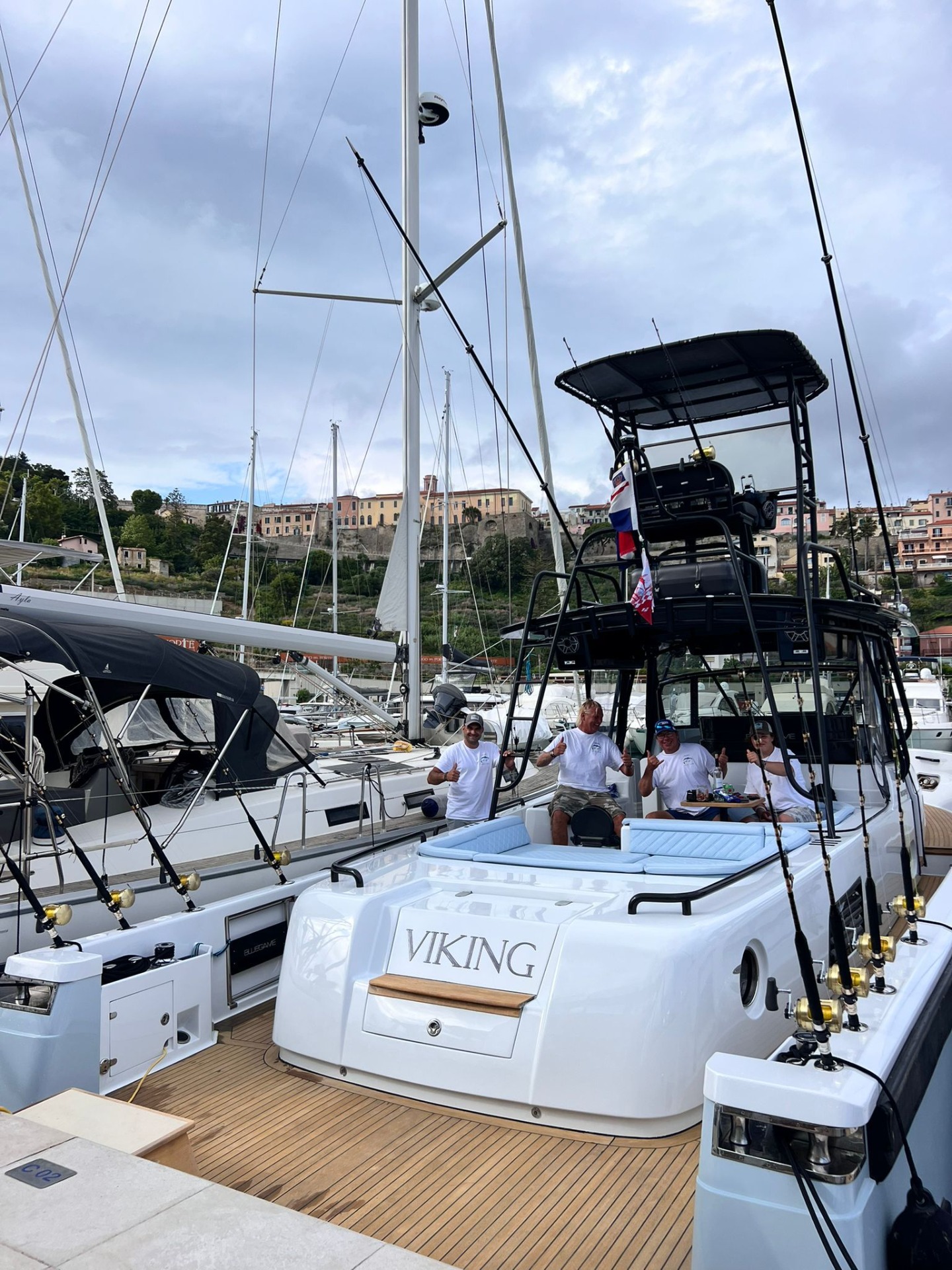 Our Boat the VIKING is a Blue-Game 47 with twin Cummins 715 HP engines she is the fastest and most complete charter boat in the Mediterranean for serious fishing .